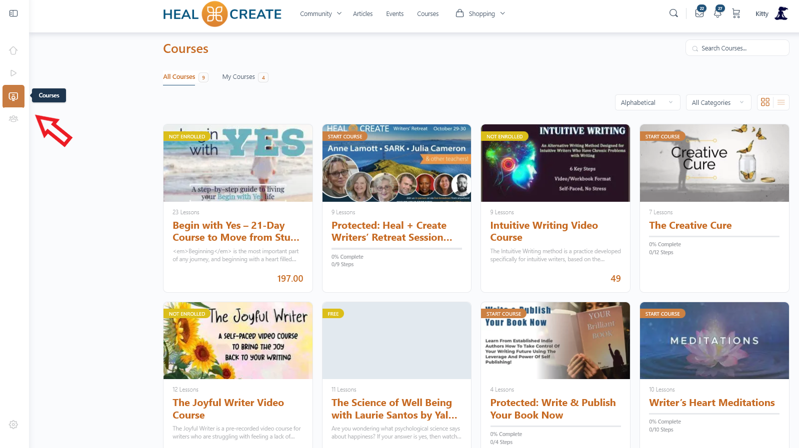 If you purchased a workshop, you can access those replays under the Courses tab in the menu on the left, as well as any courses you've enrolled in.