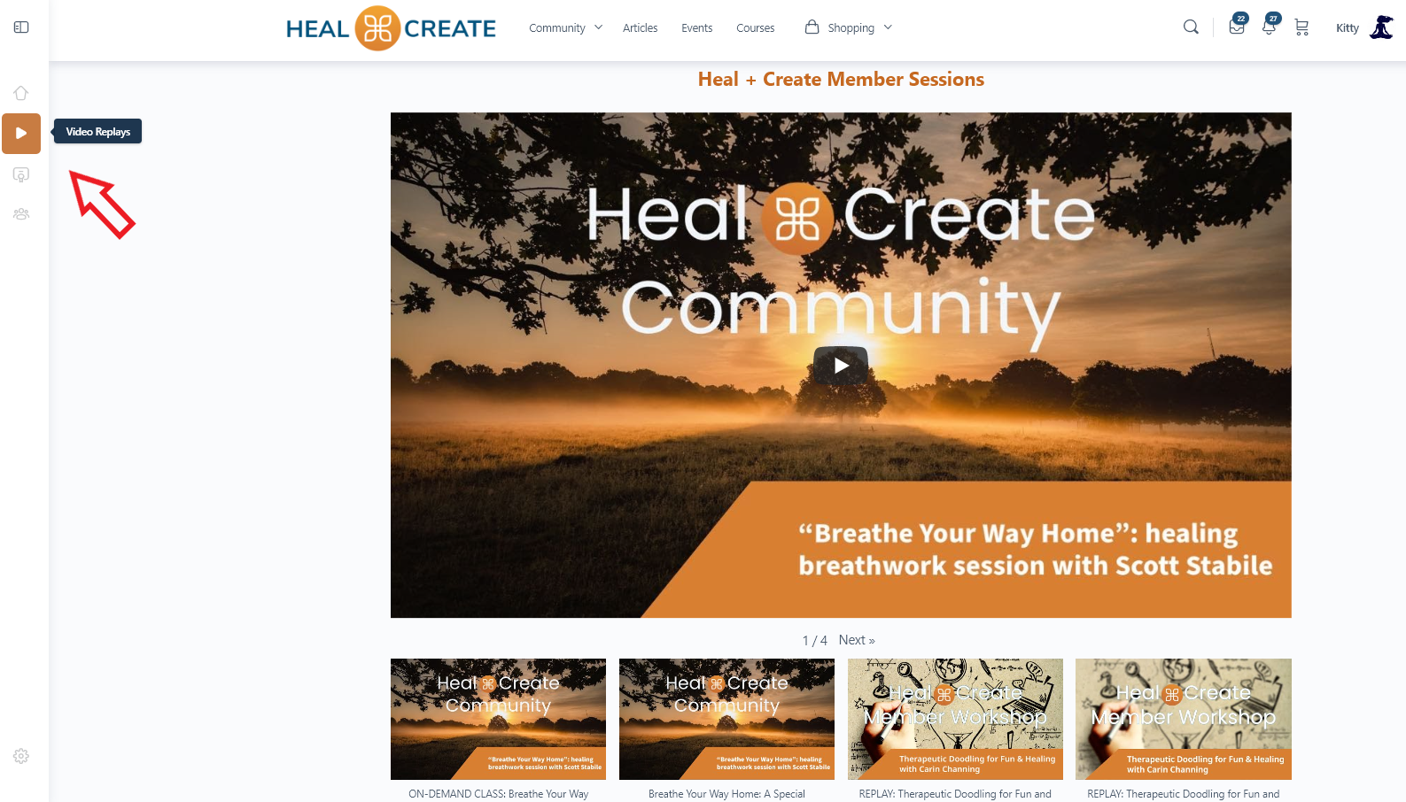 To access replays from our member sessions, just go to www.healcreate.org, log in to your account, and click on the Video Replays icon in the menu on the left side of the page.
